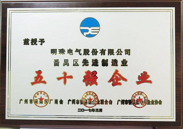 我公司被評為“番禺區(qū)先進(jìn)制造業(yè)50 強(qiáng)企業(yè)”彰顯了我公司雄厚的實力和社會各界的認(rèn)可,進(jìn)一步提升我公司的名譽及品牌價值,為公司的可持續(xù)發(fā)展提供保障。大浪淘沙,不進(jìn)則退,在世界經(jīng)濟(jì)全球化進(jìn)程大大加速的今天,機(jī)遇與挑戰(zhàn)并存。明珠電氣將秉持服務(wù)客戶,造福社會的信念,應(yīng)對國際化的競爭法則與商業(yè)標(biāo)準(zhǔn),開拓思路,與時俱進(jìn),創(chuàng)建明珠一流的品牌,讓明珠散發(fā)出絢麗的光彩。