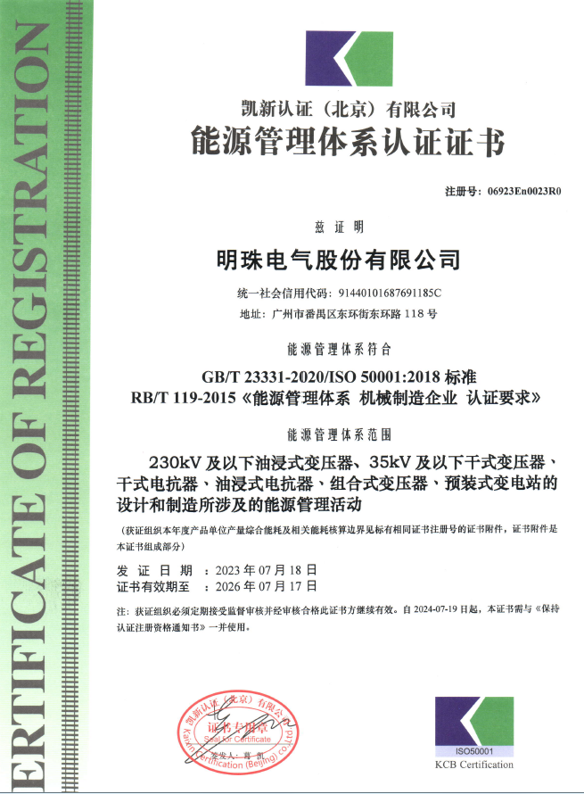 ISO50001 能源管理體系認證證書